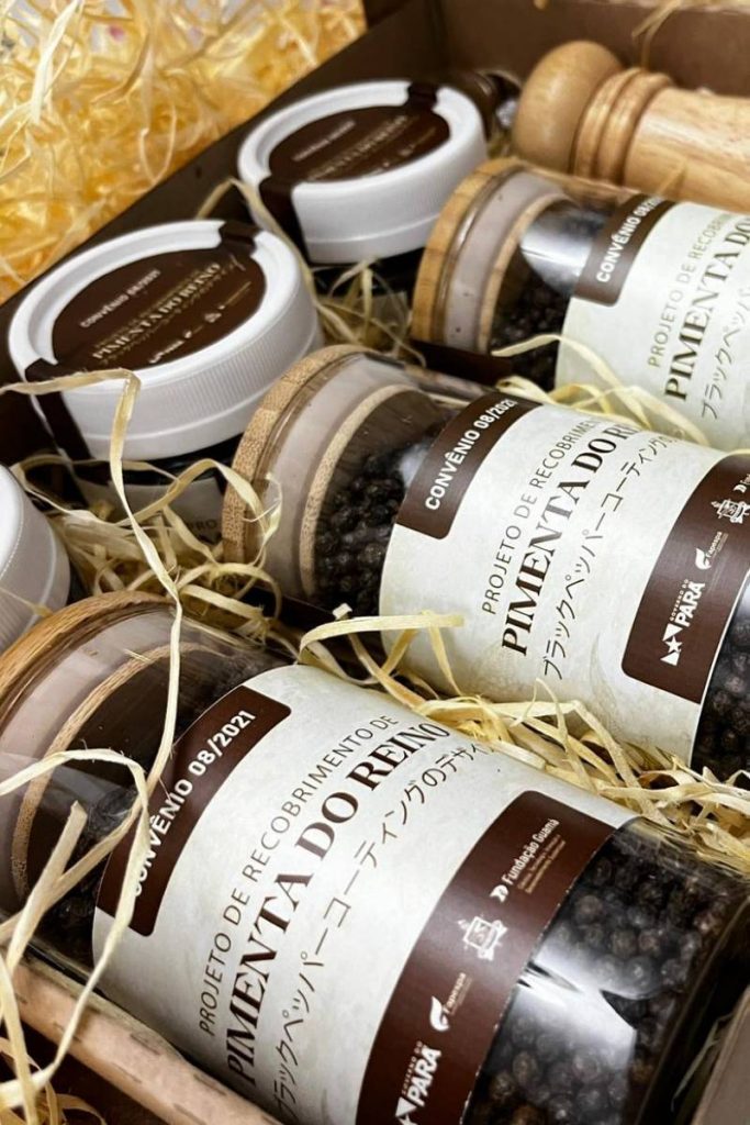 A pimenta-do-reino recoberta foi apresentada com três propostas de embalagens para comercialização no mercado, o kit completo, o pote plástico com 150g, e o pote de vidro de 250g. O produto é resultado da pesquisa que desenvolveu uma película protetora feita de amido de mandioca, e que conserva por maior tempo as sementes, já que possui um biofilme que serve como barreira contra a contaminação por microrganismo durante o armazenamento e transporte, atendendo às normas sanitárias.