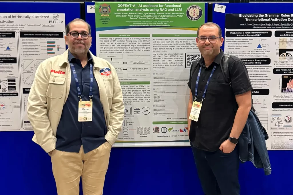 Na oportunidade, os cientistas apresentaram no evento o “GOFEAT-AI: AI assistant for functional annotation analysis using RAG and LLM”, uma ferramenta de análise de anotação funcional que utiliza técnicas de inteligência artificial (IA) generativa para criar uma forma de interação entre usuários e seus dados.